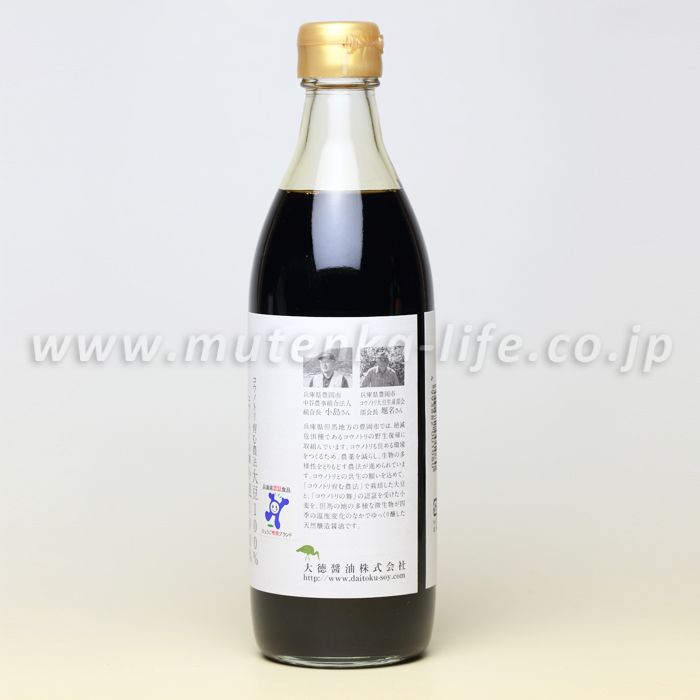 杉蔵に住み着いた多様な発酵微生物がその生命活動の産物としてしょうゆを醸していく様は、多くの生き物が暮らす田畑が、安全な農作物を育てていく姿に似ています。農家の努力に応える醸造を続けていきたいと思います。 【使用原料の詳細】 兵庫県豊岡市産の減農薬大豆・減農薬小麦、崎戸島の平釜塩「海はいのち にっぽんの海塩」を使用しています。